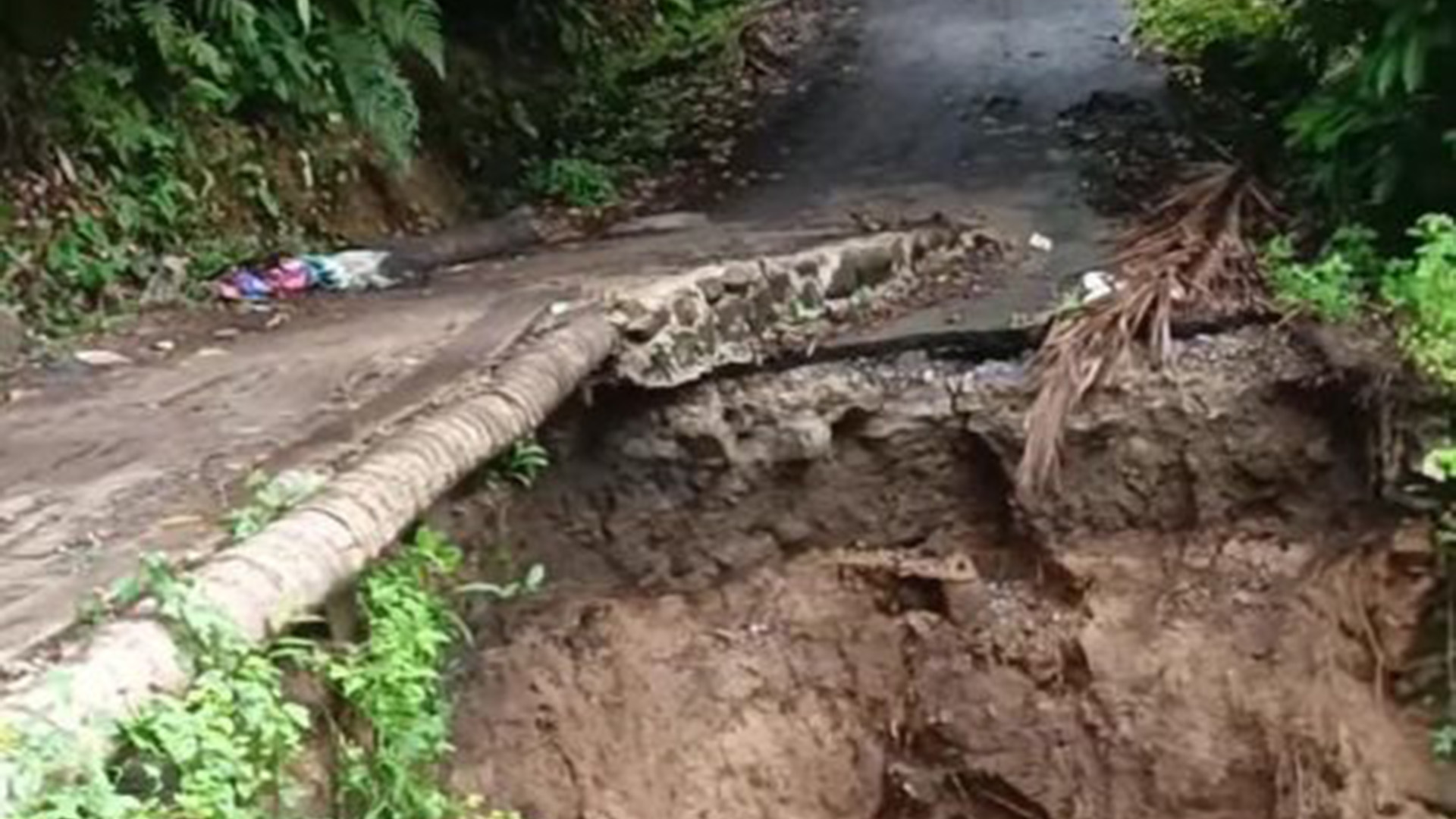 Di jelaskan bahwa, terbannya jalan tersebut, bermula dari tumbangnya sebatang pohon kelapa di pinggir jalan pada bulan Mei 2024 silam. Pohon kelapa yang tumbang, tunggul akarnya ikut menyeret lebih separo badan jalan,ujarnya. Jalan yang hampir terputus total ini sepanjang lebih kurang 20 meter. Supaya bisa tetap dilalui kendaraan roda dua, masyarakat memasang alas jalan darurat yang terbuat dari batang Pinang dan Papan, imbuhnya.